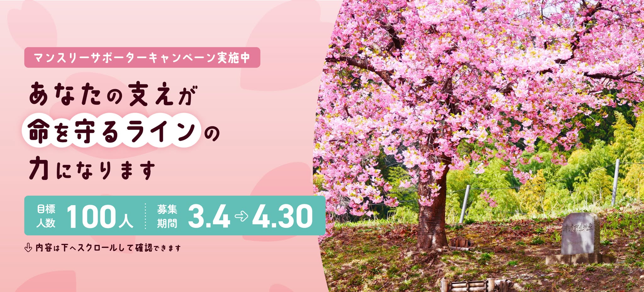 あなたの「遺贈」が、後世を生きる方たちの命を守る桜並木へとつながります。